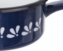 Temno modra izvedba z belim motivom doda kuhanju čar tradicionalne posode in se zlahka kombinira z drugimi seti.