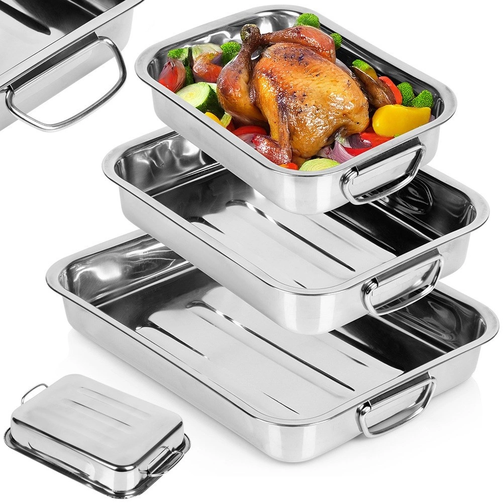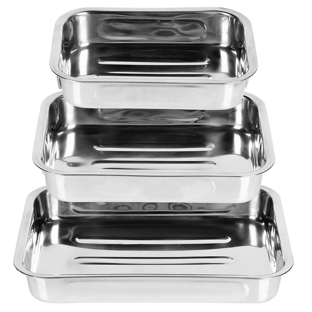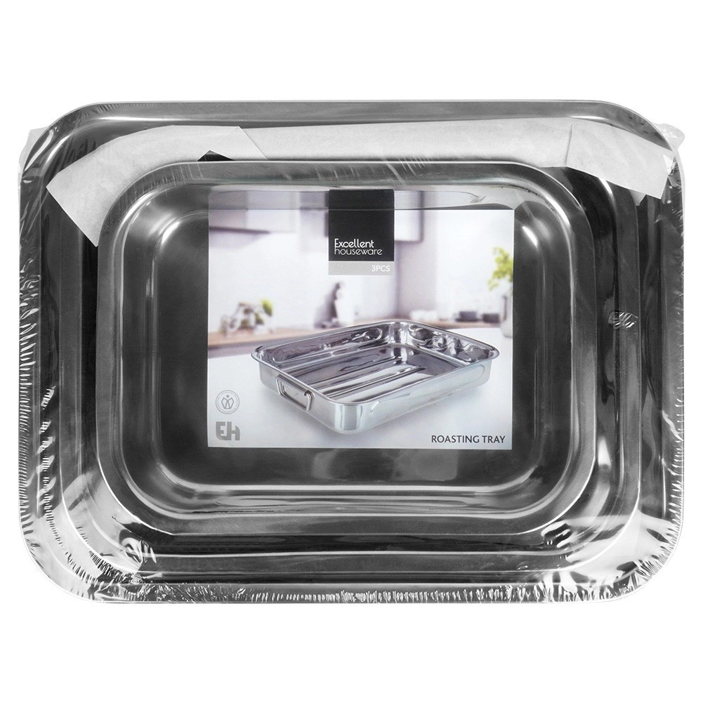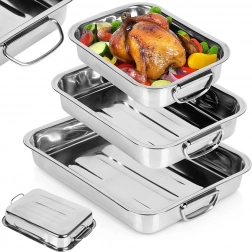 Komplet treh robustnih pekačev iz poliranega nerjavnega jekla nudi vsestransko uporabo za pečenje mesa, zelenjave, sladic in gratiniranih jedi. Zahvaljujoč gladki površini se enostavno čistijo in odlikujejo z dolgo življenjsko dobo. Integrirani zložljivi ročaji olajšajo rokovanje pri vstavljanju in dvigovanju iz pečice.