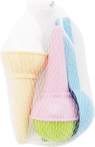 Komplet je izdelan iz kakovostne, varne in brezvončne plastike. Nežna barvna paleta (rožnata, bela, svetlo zelena, modra in bež) je za otroke privlačna in pomirjujoča. Igračo lahko uporabite na plaži, v peskovniku, na vrtu ali v vrtcu.