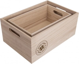Praktična lesena škatla za vsakodnevno uporabo. Izdelana je iz naravnega lesa, ki je trpežen in lepo izgleda v modernih in klasičnih interierjih. Zahvaljujoč dvema stranskima ročajema jo zlahka prenesete tudi napolnjeno.