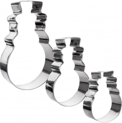 Set treh kakovostnih modelčkov za izrezovanje v obliki snežaka bo razveselil vsakega ljubitelja peke. Izdelani so iz vzdržljivega nerjavnega jekla, zato so trdni, higienski in pripravljeni na vsakoletni praznični maraton. Tri praktične velikosti (velika 13 × 8,5 × 2,5 cm, srednja 10 × 7 × 2,5 cm, majhna 7,5 × 5 × 2,5 cm) omogočajo ustvarjanje učinkovitih večplastnih dekoracij in kompletov piškotov.