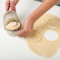 Izdelan iz kakovostne, odporne plastike v bež barvi, primerne za pomivalni stroj. Idealen za začetnike in izkušene kuharje – popoln za pirohe, žepke, raviolije ali empanade.