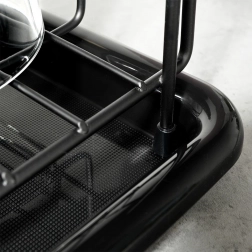 Sestavni del je dvo-komorna, odstranljiva košarica za pribor, ki jo lahko po potrebi namestite v notranjost sušilnika ali na zunanjo stran. Minimalističen videz in brezčasna črna barva se ujemata s klasičnimi, modernimi in industrijskimi interierji.
