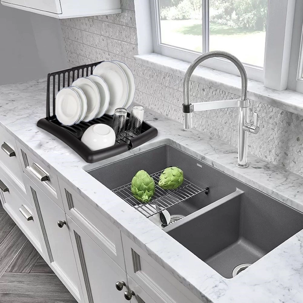 Navpične reže varno držijo krožnike, medtem ko je ravni rebrasti del idealen za skodelice, sklede in kozarce.