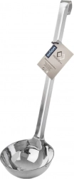 Univerzalna zajemalka iz nerjavečega jekla je nepogrešljiv pomočnik v vsaki kuhinji. Zahvaljujoč prostornini 300 ml hitro in natančno zajamete juho, omako, kompot ali golaž. Dolgi ročaj zagotavlja varno in udobno držanje ter olajša serviranje iz globljih loncev.