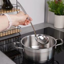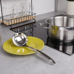 Globoka, okrogla zajemalka s prostornino 80 ml omogoča udobno in natančno zajemanje juh, omak in golaža brez nepotrebnega kapljanja.