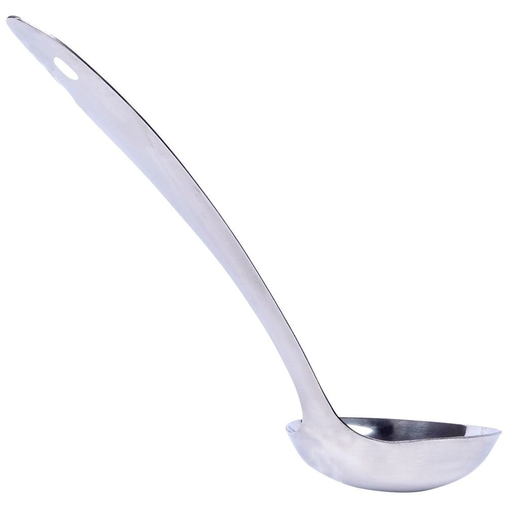 Univerzalna zajemalka iz nerjavnega jekla je nepogrešljiv pomočnik za vsakodnevno kuhanje in serviranje. Prostornina 80 ml omogoča natančno odmerjanje porcij juhe, omake, kompota ali golaža. Dolg ročaj ohranja roke na varni razdalji od vročih tekočin, medtem ko obesno očesce olajša shranjevanje na kuhinjskem relingu.