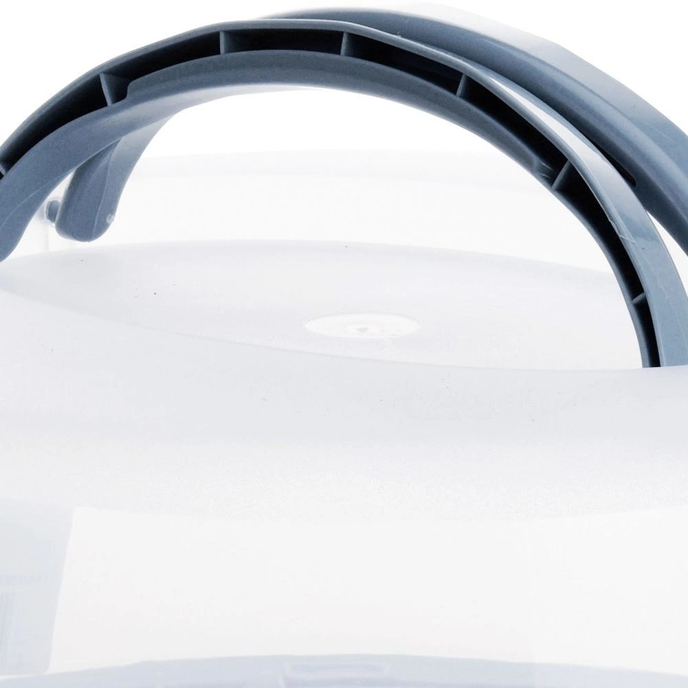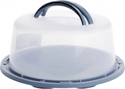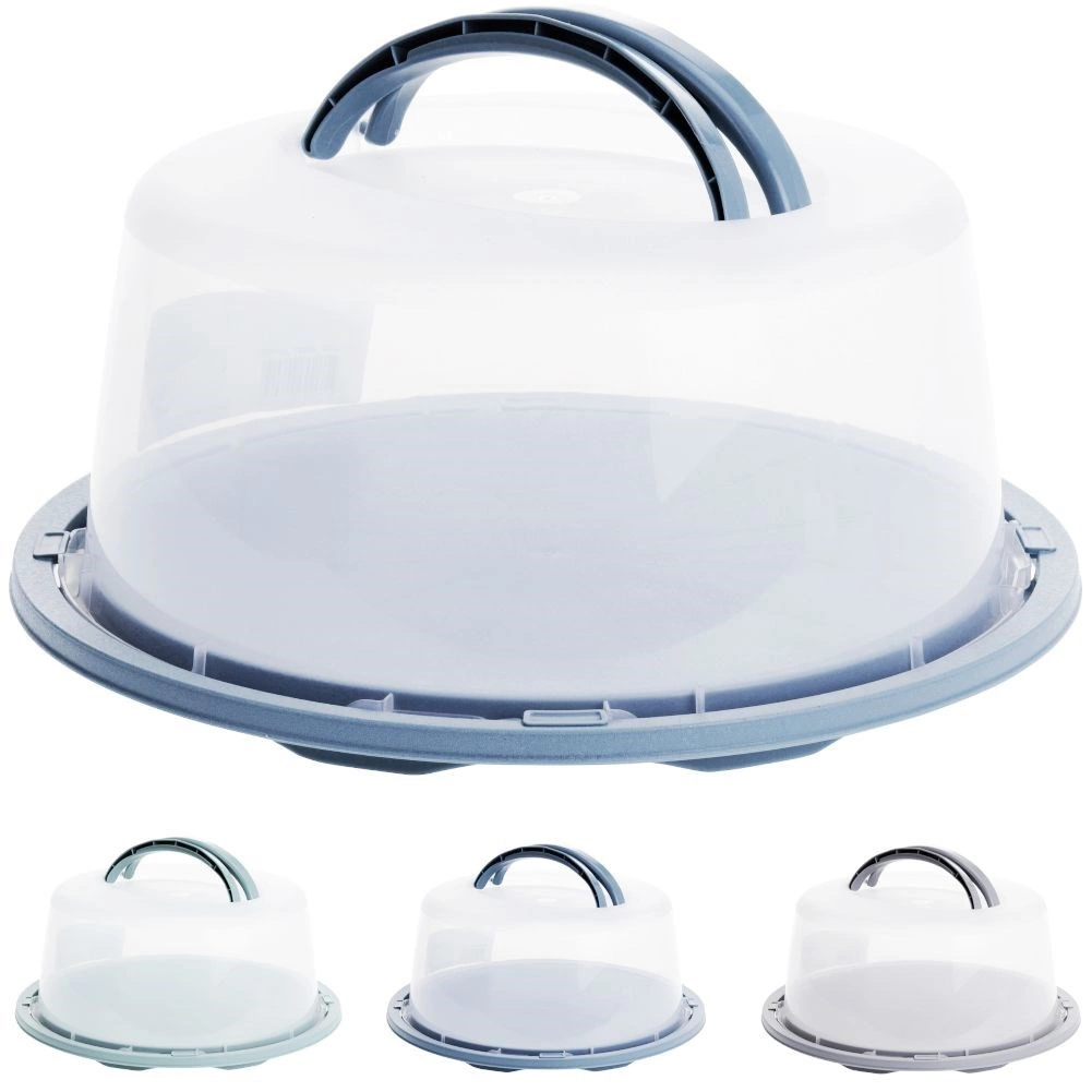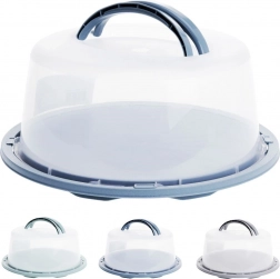 Ta okrogla transportna posoda je idealna za torte, pite in drugo pecivo. Prozoren, kupolast pokrov z udobnim zložljivim ročajem olajša rokovanje, medtem ko varnostne zapore po obodu zagotavljajo zanesljivo zapiranje med potjo. Osnova je na voljo v več barvah (modra, zelena, siva – pošiljamo naključno).