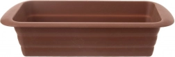 Ta pravokotni silikonski pekač v rjavi barvi je idealen za peko domačega kruha, biskvitnih in kvaskanih test, pa tudi za mase za bábovko ali paštete. Prožen in odporen silikon omogoča udobno odstranjevanje pečenega peciva brez potrebe po namastitvi ali pomokanju.