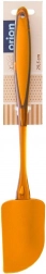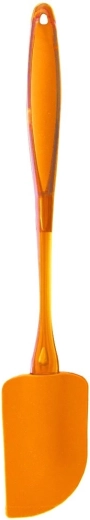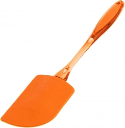 Lopatka je izdelana iz trpežnega, prožnega silikona, ki ne vpija vonjav niti tekočin. Ergonomsko oblikovan, nedrseč ročaj odlično sede v roko, odprtina na koncu pa omogoča obešanje na reling. Celoten oranžen videz se stilsko poda tako v moderno kot tradicionalno kuhinjo.