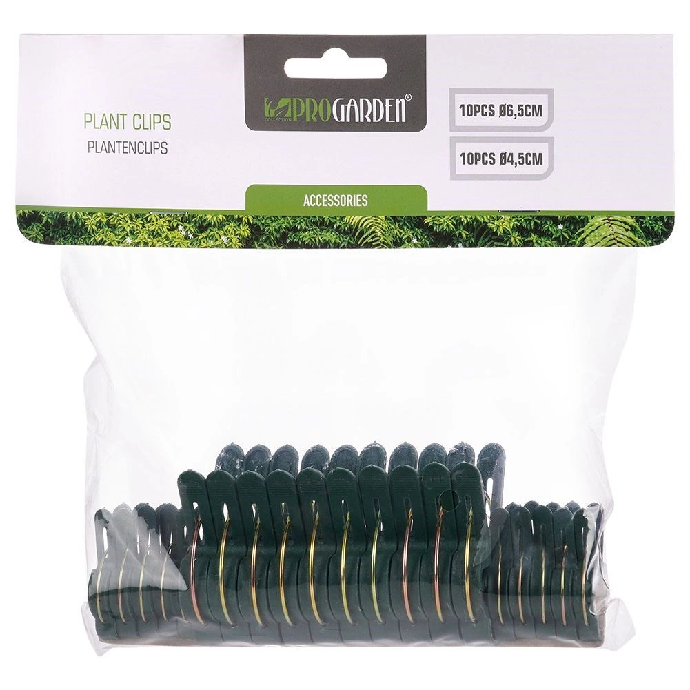 Set vrtnarskih sponk PROGARDEN v dveh velikostih (10× 4,5 cm in 10× 6,5 cm) olajša privezovanje in oblikovanje rastlin doma in na vrtu. Vzmetni mehanizem z zanesljivim oprijemom drži stebla ob palicah ali mrežah, ne da bi jih stiskal.