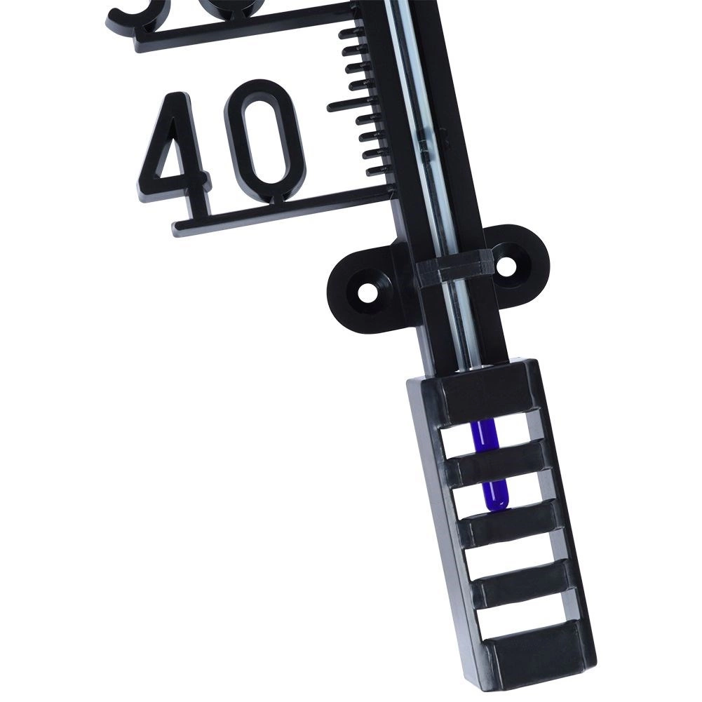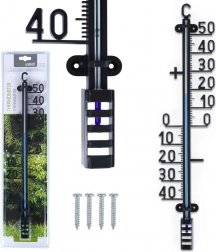 Termometer je izdelan iz kakovostne, odporne plastike v elegantni črni barvi, ki prenese dež, sonce in mraz. Montaža je preprosta – odprtine za pritrditev omogočajo hitro namestitev na fasado, leseno ograjo ali vrtno lopo.