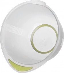 Ta lahka in hkrati trpežna skleda s prostornino 1,5 litra je odličen pomočnik za vsakodnevno kuhanje in peko. Integrirana merilna lestvica omogoča natančno odmerjanje sestavin neposredno v skledi, zato ne potrebujete dodatnega pripomočka. Visoke stene zmanjšujejo škropljenje pri intenzivnem stepanju.