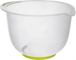 Praktičen izlivnik in stranski ročaj omogočata enostavno in čisto prelivanje testa ter omak. Protizdrsno gumijasto dno drži skledo stabilno na mestu, ne glede na to, kaj mešate. Material je varen za stik z živili, odporen na temperature od -25 °C do 95 °C ter primeren za pomivalni stroj in uporabo v mikrovalovni pečici.
