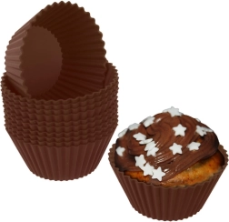 Praktičen komplet 12 silikonskih modelčkov za mafine v rjavi barvi. So odporni na temperature od -40 do +220 °C, neprijemljivi, večkrat uporabni in primerni za pečico, mikrovalovno pečico, zamrzovalnik in pomivalni stroj. Zaradi valovitega roba sladicam dodajo eleganten videz ter zagotavljajo enakomerno peko brez mazanja z maščobo ali posipanja z moko.