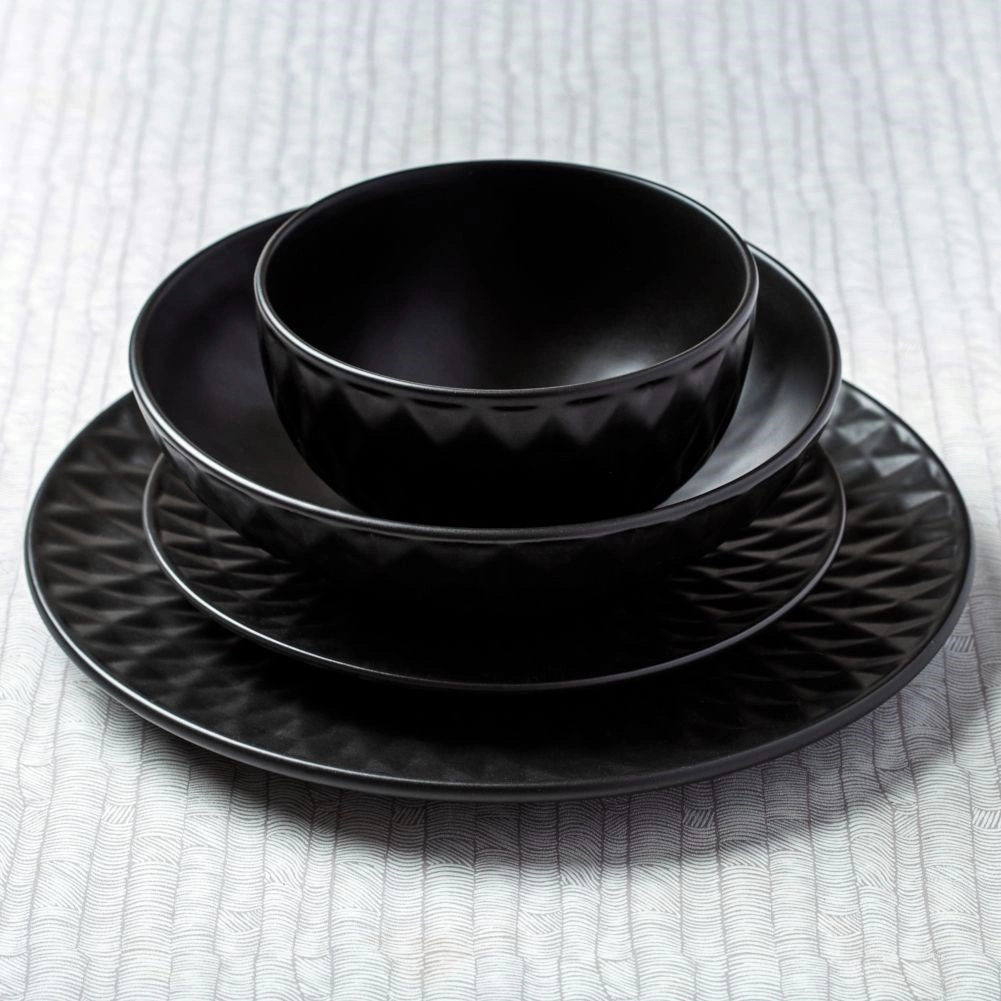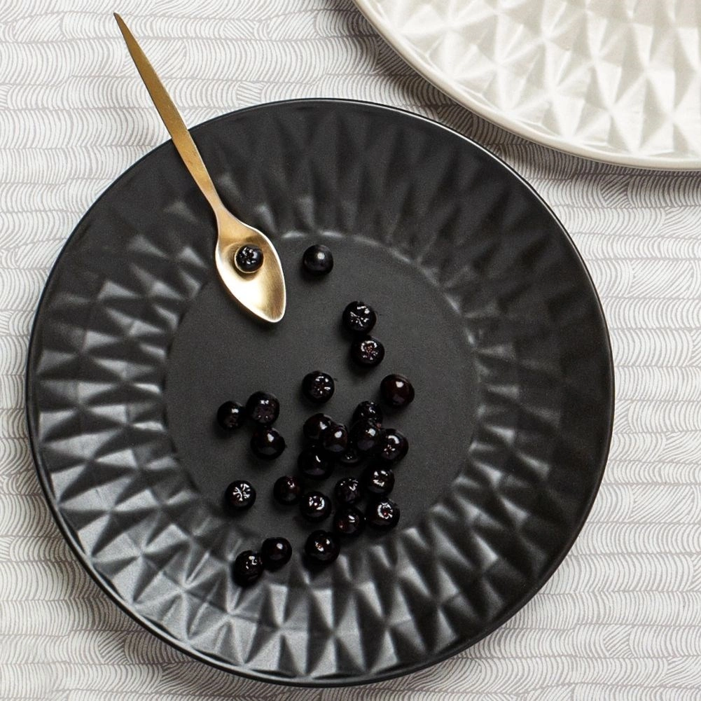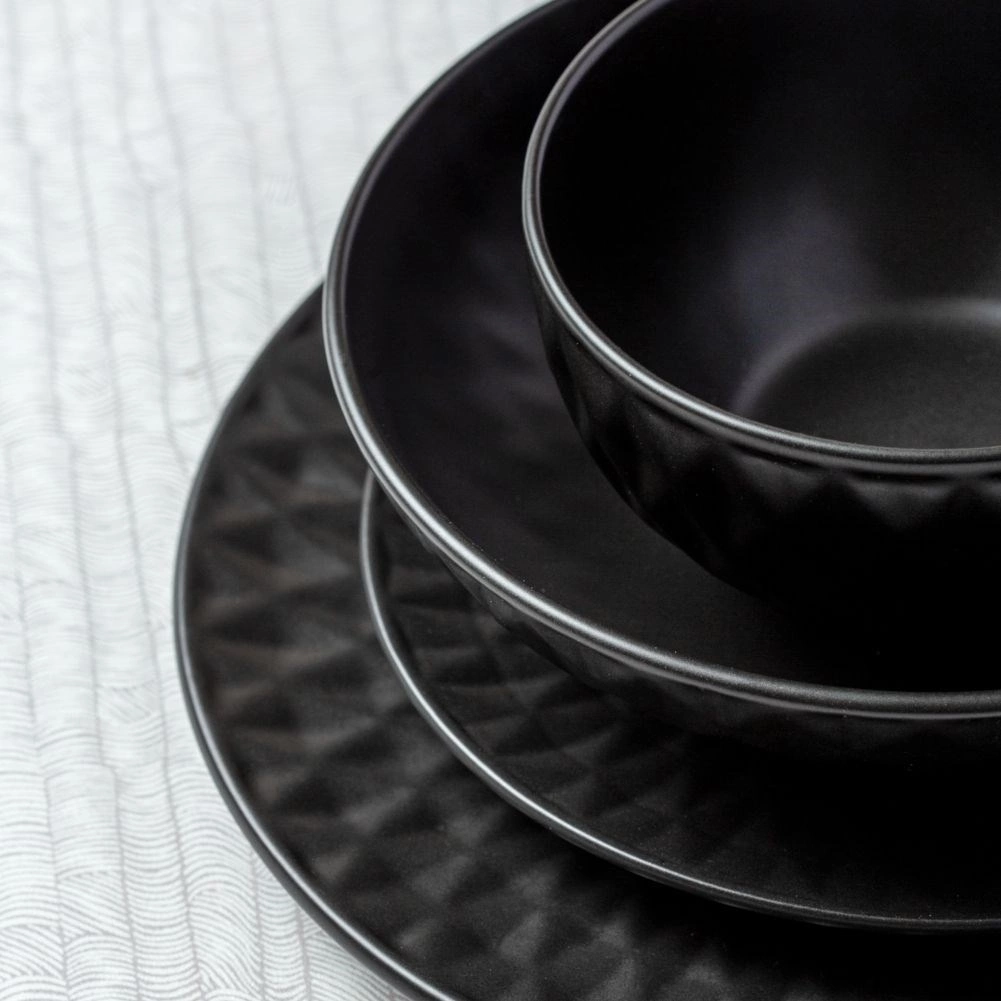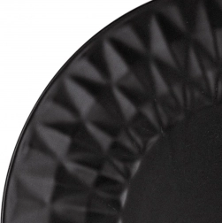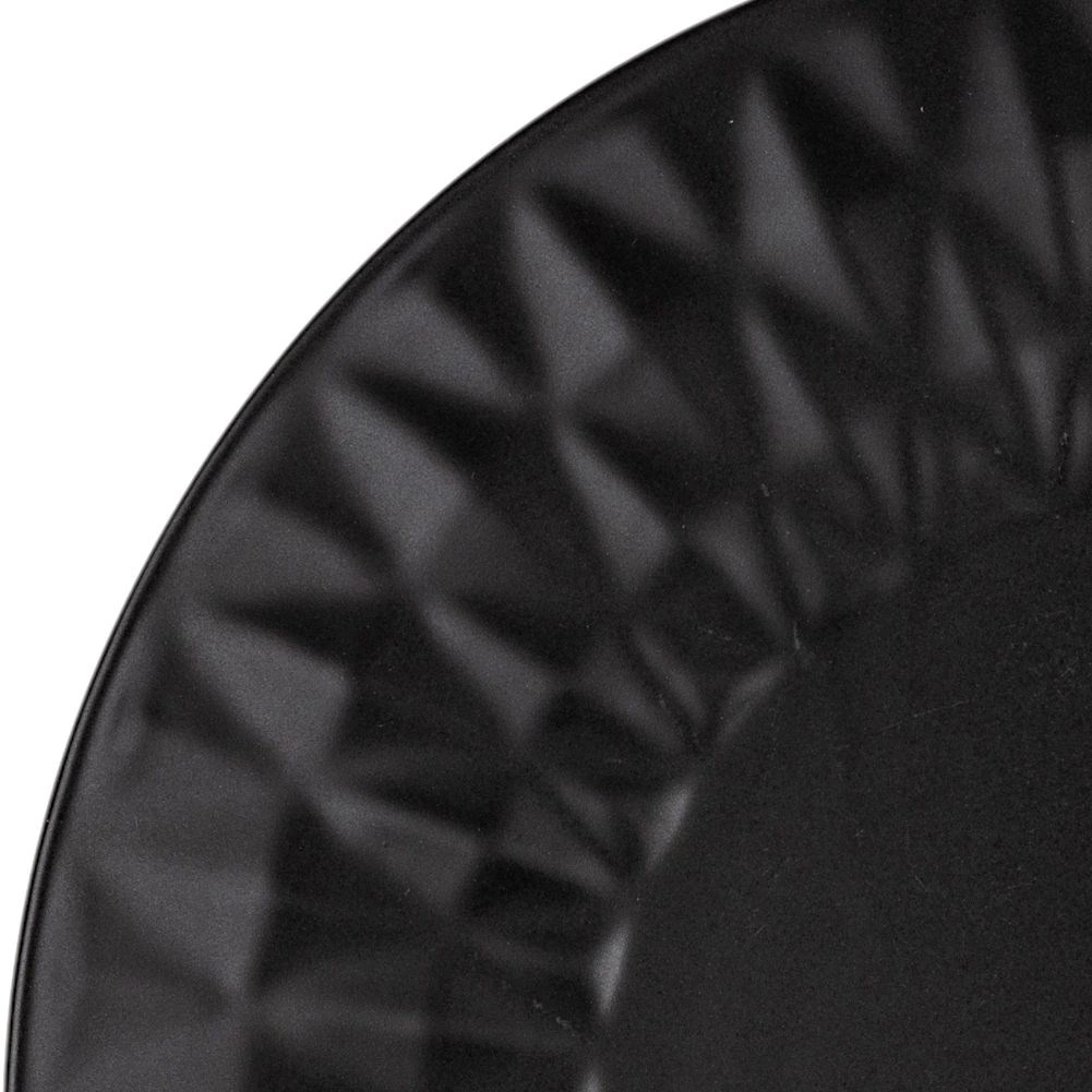 Eleganten desertni krožnik v sodobni črni barvi združuje brezčasen oblikovni jezik in izrazit reliefni rob. Kakovostna keramika zagotavlja vzdržljivost in udobno vsakodnevno uporabo, ne glede na to, ali strežete pite, sladice, sadje ali manjše prigrizke.