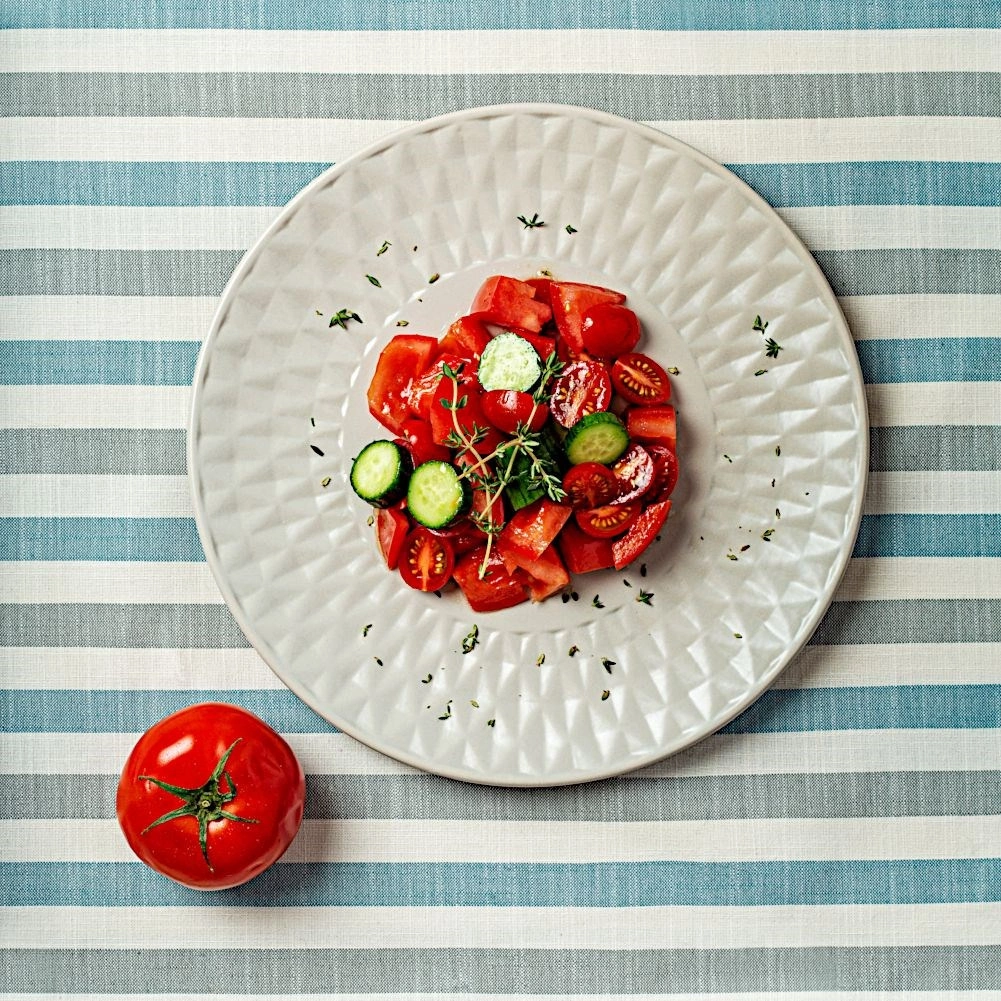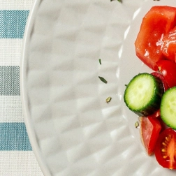 Okrasno geometrijsko vtiskanje krožniku doda edinstven videz in povzdigne serviranje sladic ter predjedi.