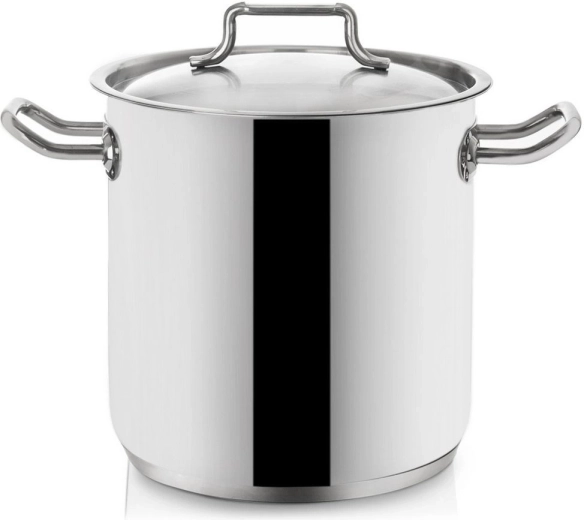 Ta masiven nerjavnojeklinski lonec s pokrovko je odlična izbira za juhe, omake in dušene jedi. Kakovostno jeklo 304 (18/10) zagotavlja dolgo življenjsko dobo, odpornost proti koroziji in enostavno vzdrževanje. Polirana zunanja in notranja površina zagotavlja eleganten videz in olajša čiščenje.