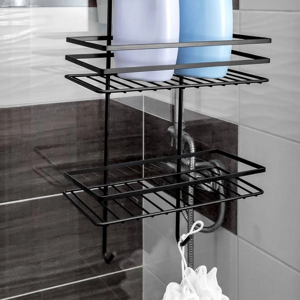 Odkrijte pametno in stilsko rešitev za prho. Ta viseča kovinska polička v industrijskem loft slogu prinaša maksimalen red brez vrtanja v keramiko. Zaradi odprte žičnate konstrukcije voda hitro odteka, vaša kozmetika pa ostane higiensko shranjena in vedno pri roki.