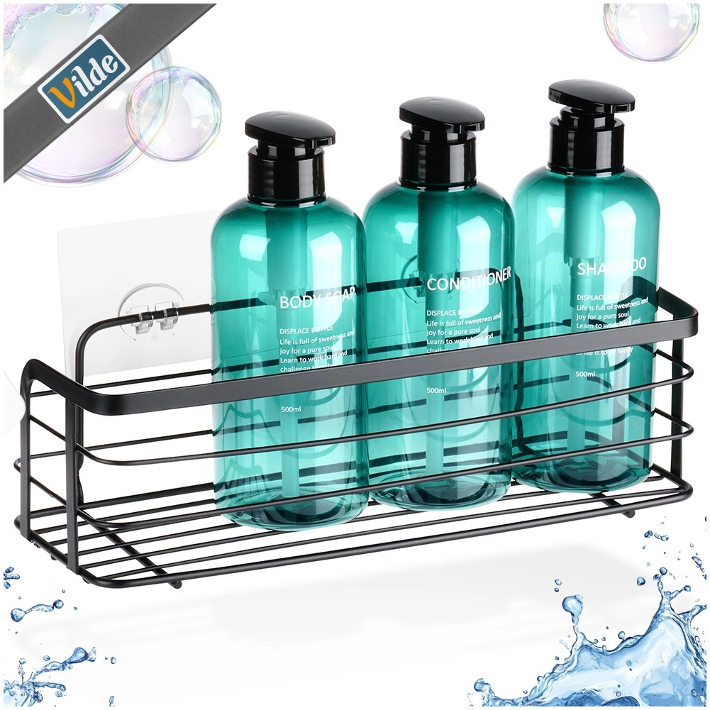 Uredite kopalnico v slogu in brez vrtanja. Nalepilna polička Vilde v industrijskem loft slogu se trdno prilepi na gladke, razmaščene površine s pomočjo prozorne samolepilne podlage. Dimenzije 31 × 12 × 9,5 cm ponujajo dovolj prostora za gele za tuširanje, šampone in gobice, medtem ko povišana ograja preprečuje padanje predmetov.