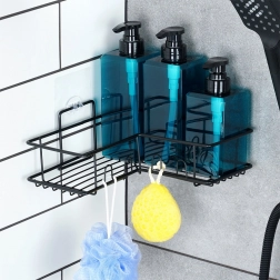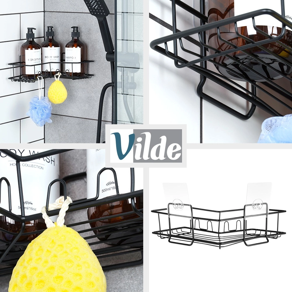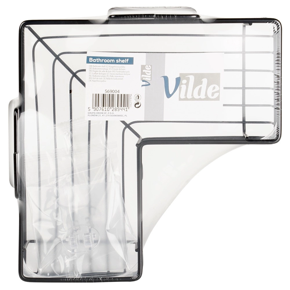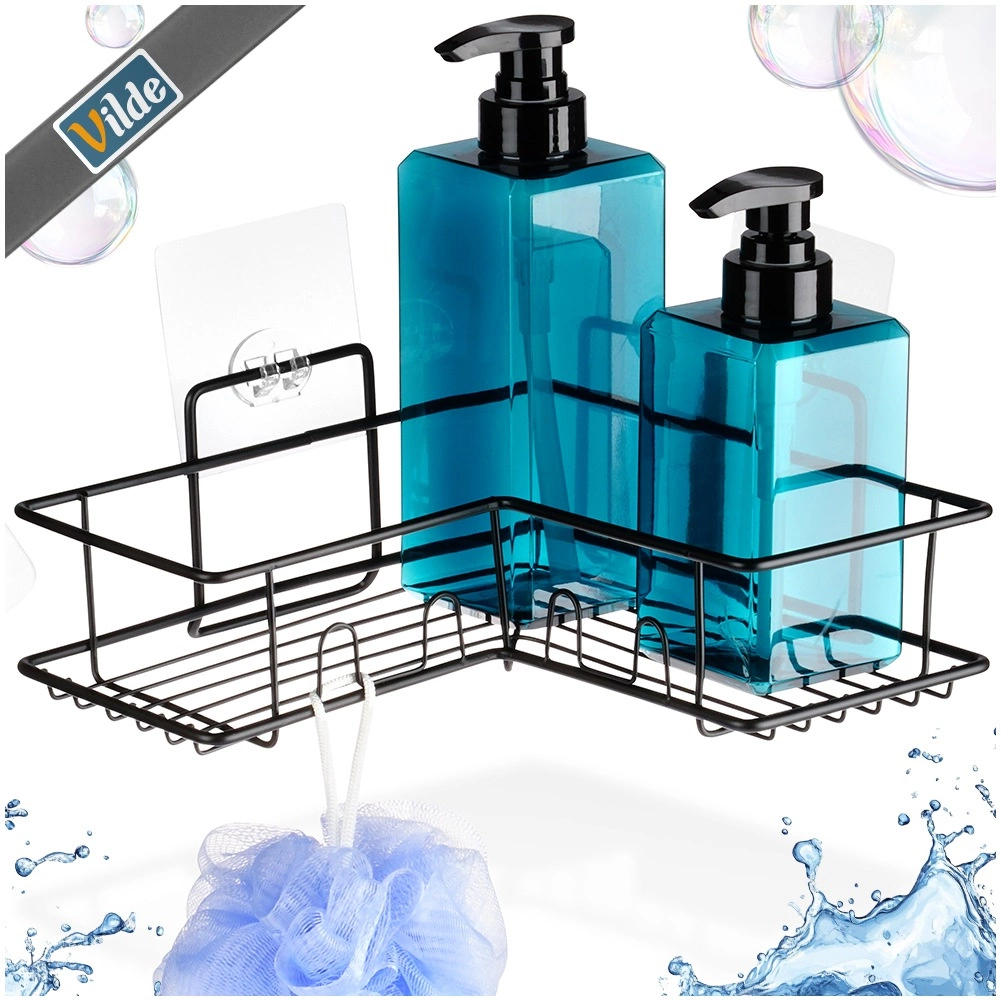 Kotna pršna polica Vilde učinkovito izkoristi prostor v kotu in vaše šampone, mila ter gobice ohrani vedno pri roki. Kovinska konstrukcija s črnim prašnim lakom je odporna proti koroziji in se odlično poda k moderni kopalnici. Odprta žična zasnova zagotavlja hiter odtok in čisto, higienično okolje.