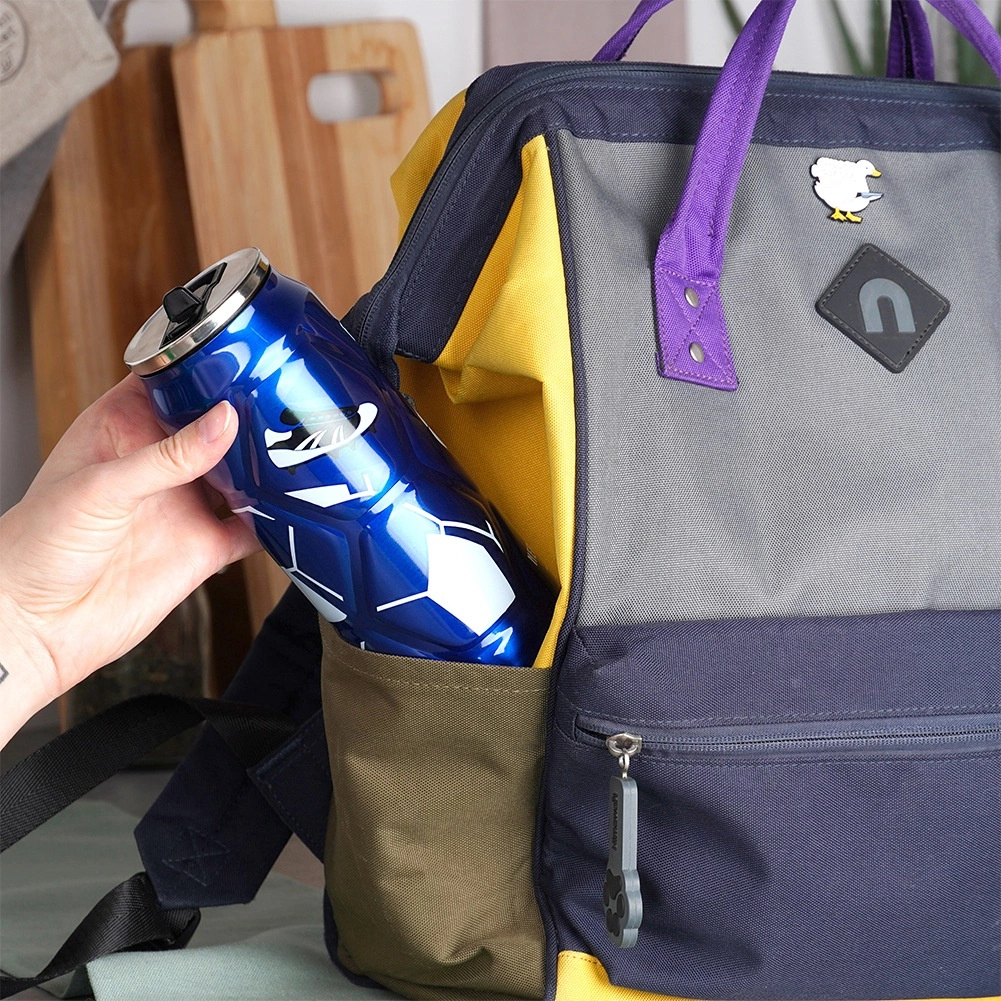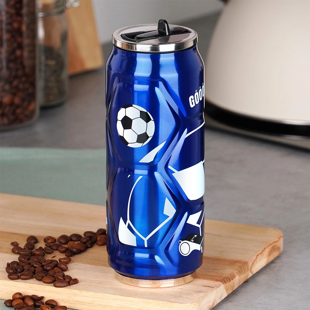 Uživajte v svojih najljubših pijačah v modernem termo lončku v obliki pločevinke z efektni̇m nogometnim motivom na modrem ozadju. Kakovostno nerjavno jeklo zunaj in znotraj zagotavlja vzdržljivost ter čist okus brez neželenih vonjav. Vakuumska izolacija ohranja tople pijače do 12 ur in hladne do 8 ur – idealno za potovanja, pisarno in šport.