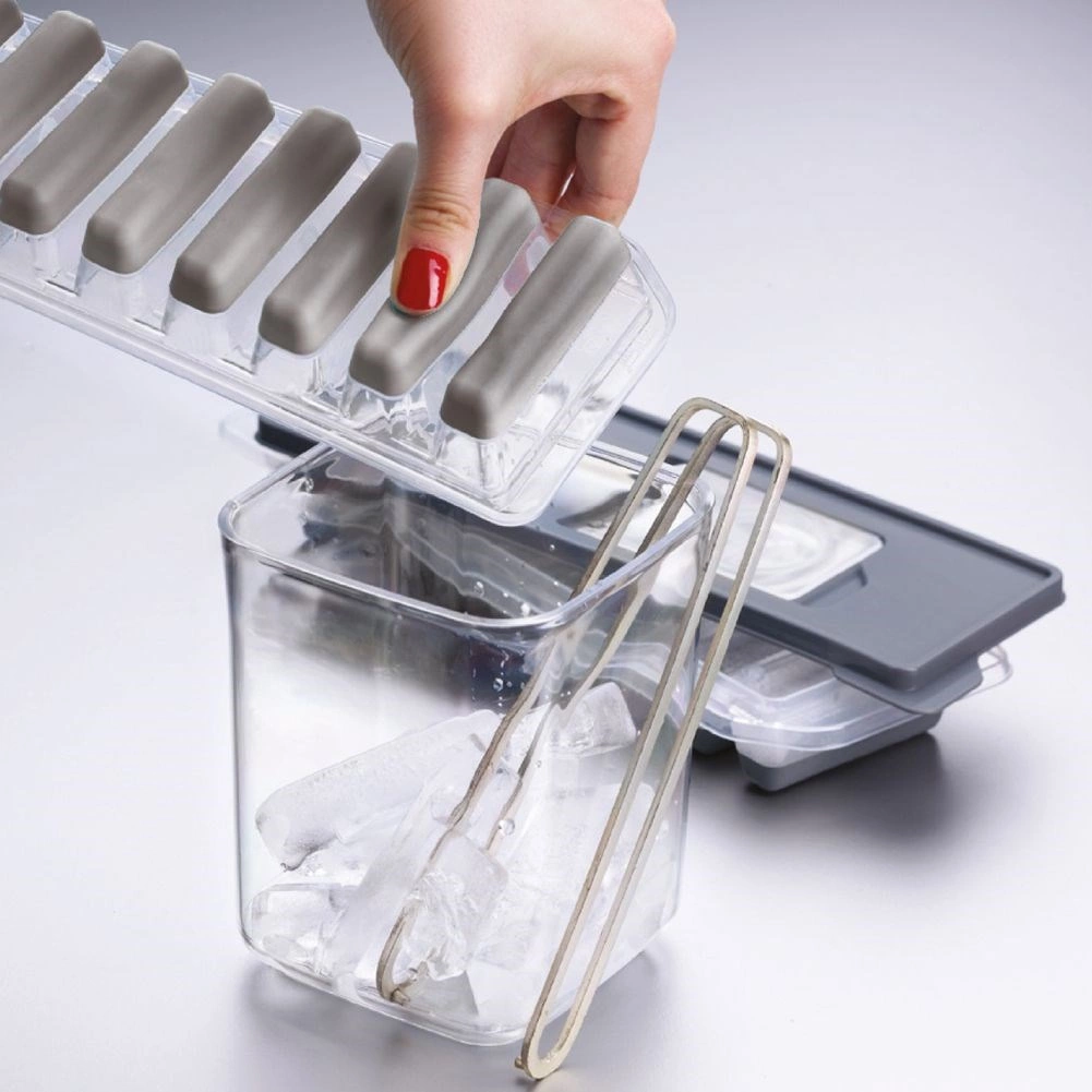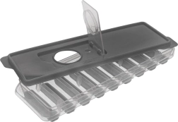Praktičen silikonski model za led pripravi do 9 podolgovatih kock, ki se zlahka prilegajo v steklenice. Zahvaljujoč elastičnemu dnu kocke brez napora iztisnete, pokrov pa zagotavlja čisto in udobno zamrzovanje brez polivanja. Primeren tudi za sadne sokove, sorbete in domače lučke. VarnI materiali, enostavno vzdrževanje in možnost pomivanja v pomivalnem stroju.