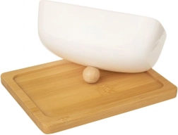 Enostavno rokovanje zagotavlja praktičen lesen gumb na pokrovu, s katerim maslo udobno ponudite pri zajtrku ali med obiski. Bambus je odporen na vlago, se ne deformira in ne vpija vonjav, porcelan pa se zlahka čisti in dolgoročno ohranja svoj lesk.