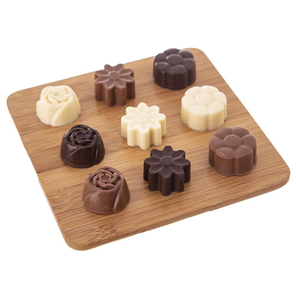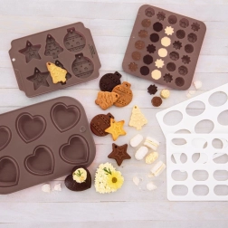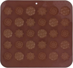 Odkrijte veselje do domače priprave čokoladnih pralin in mini piškotov. Silikonski model Sillinie z merami 21 × 20,5 cm ponuja 30 votlin približne velikosti 2,8 × 2,8 cm v treh elegantnih cvetličnih motivih. Zahvaljujoč kakovostnemu silikonu se testo ne lepi, sladice se zlahka odstranijo iz modela, model pa ne vpija vonjav ali okusov.