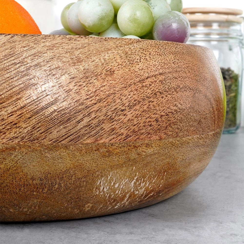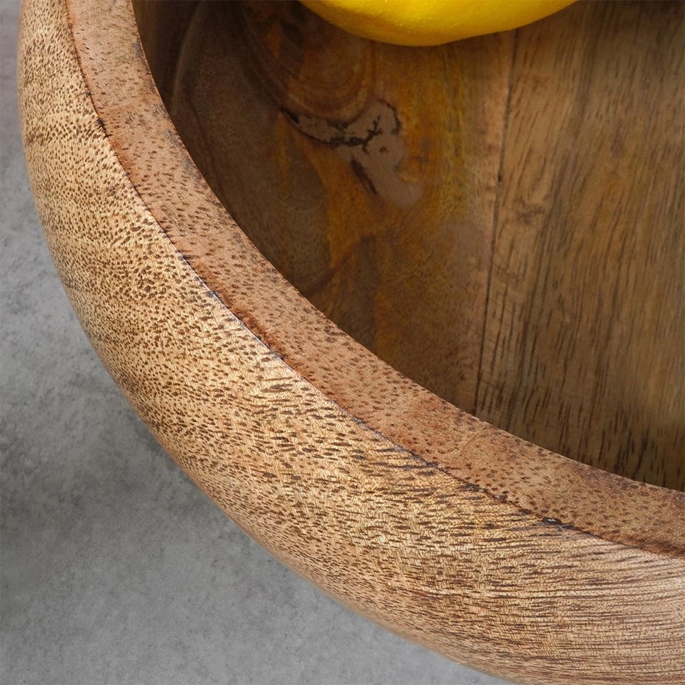Ta mangova skleda združuje funkcionalnost in estetiko. Idealen kos za serviranje oreščkov, čipsa, kokic, suhega in svežega sadja. Zaradi naravnega odtenka in izrazite strukture lesa se poda k vsaki namizni postavitvi in že sama po sebi deluje kot dekorativni element.