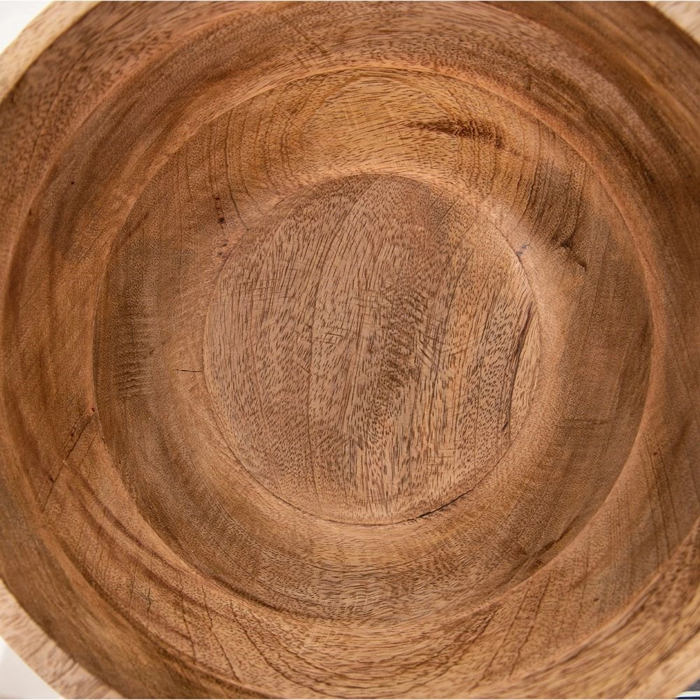 Dekorativne beljene zareze in topel odtenek mangovega lesa spremenijo skledo v funkcionalen in estetski namizni dodatek.