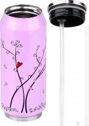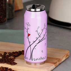 Odkrijte kombinacijo dizajna in funkcionalnosti. Ta rožnat termo lonček v obliki pločevinke je izdelan iz kakovostnega nerjavečega jekla znotraj in zunaj ter zahvaljujoč vakuumski izolaciji zanesljivo ohranja temperaturo pijač ves dan. Eleganten motiv srčkov na vejicah izstopa v pisarni, šoli in na izletih.