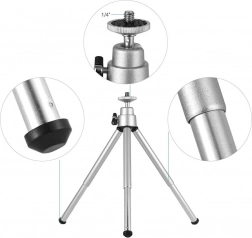 Ta kompaktni stativ je izdelan iz kakovostnega aluminija, kar zagotavlja visoko trpežnost in moč konstrukcije. Je popoln za makro fotografijo zaradi možnosti nastavitve v kateri koli poziciji s pomočjo gibljive glave, ki se premika v treh smereh. Univerzalni navoj 1/4'' je združljiv z večino kamer in fotoaparatov.