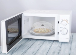 Visok kupolast pokrov preprečuje škropljenje in ohranja notranjost mikrovalovke čisto tudi pri segrevanju omak ali bolj mastnih jedi.