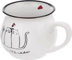 Uživajte v najljubši pijači iz elegantne skodelice s prikupnim mačjim motivom. Klasična oblika, prijeten oprijem in univerzalna uporaba iz nje delajo odličnega spremljevalca za vsak dan in posebne trenutke. Kakovostna keramika je enostavna za vzdrževanje in odporna na vsakodnevno uporabo.