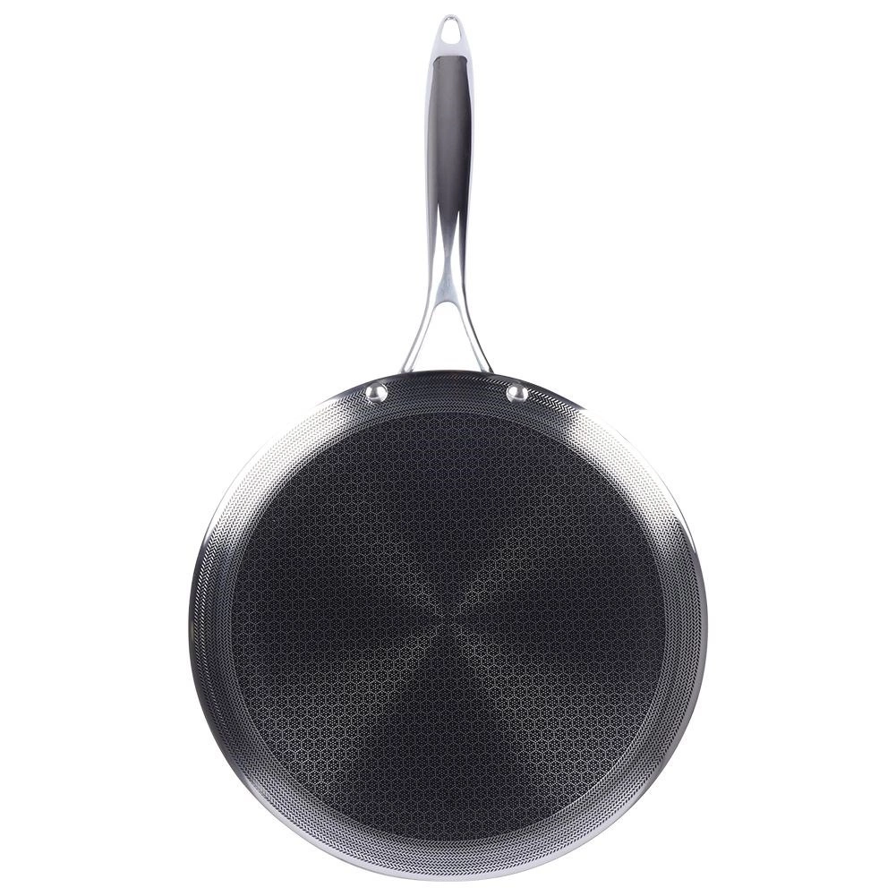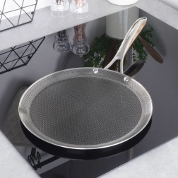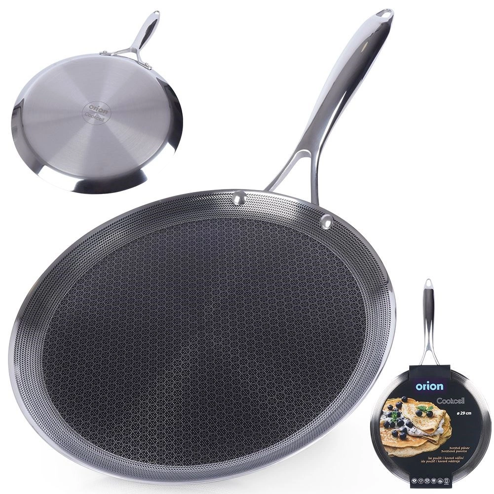 Ta nerjaveča palačinkarska ponev iz serije COOKCELL HYBRID prinaša vrhunsko neprijemljivost in dolgo življenjsko dobo. Posebna struktura površine zagotavlja enostavno sproščanje jedi, odpornost na visoke temperature in možnost uporabe kovinskih pripomočkov.