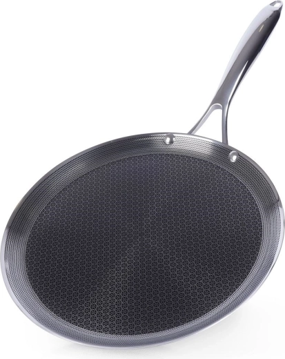Robustna konstrukcija iz nerjavnega jekla z večplastnim dnom prinaša stabilen prenos toplote za popolno zapečene palačinke brez prijemanja.