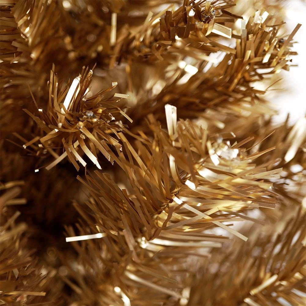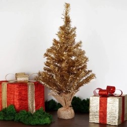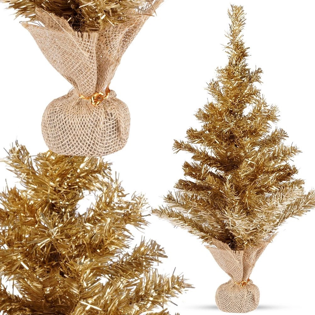 To kompaktno umetno božično drevo v razkošni zlati barvi je odlična izbira za stanovanje, pisarno in manjše prostore. Zahvaljujoč čvrstemu kovinskemu jedru in stabilnemu betonskemu stojalu v jutenem ovoju trdno stoji in ga je enostavno postaviti na mizo, polico ali okensko polico.