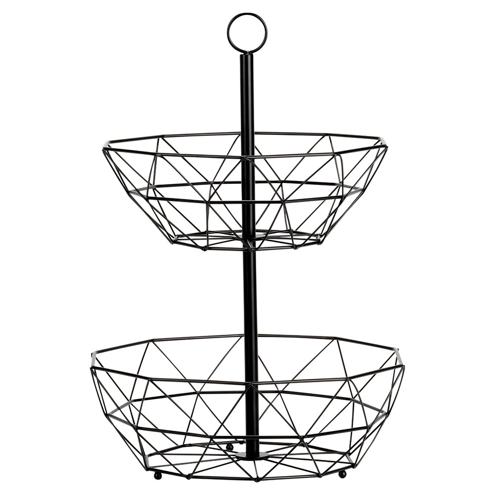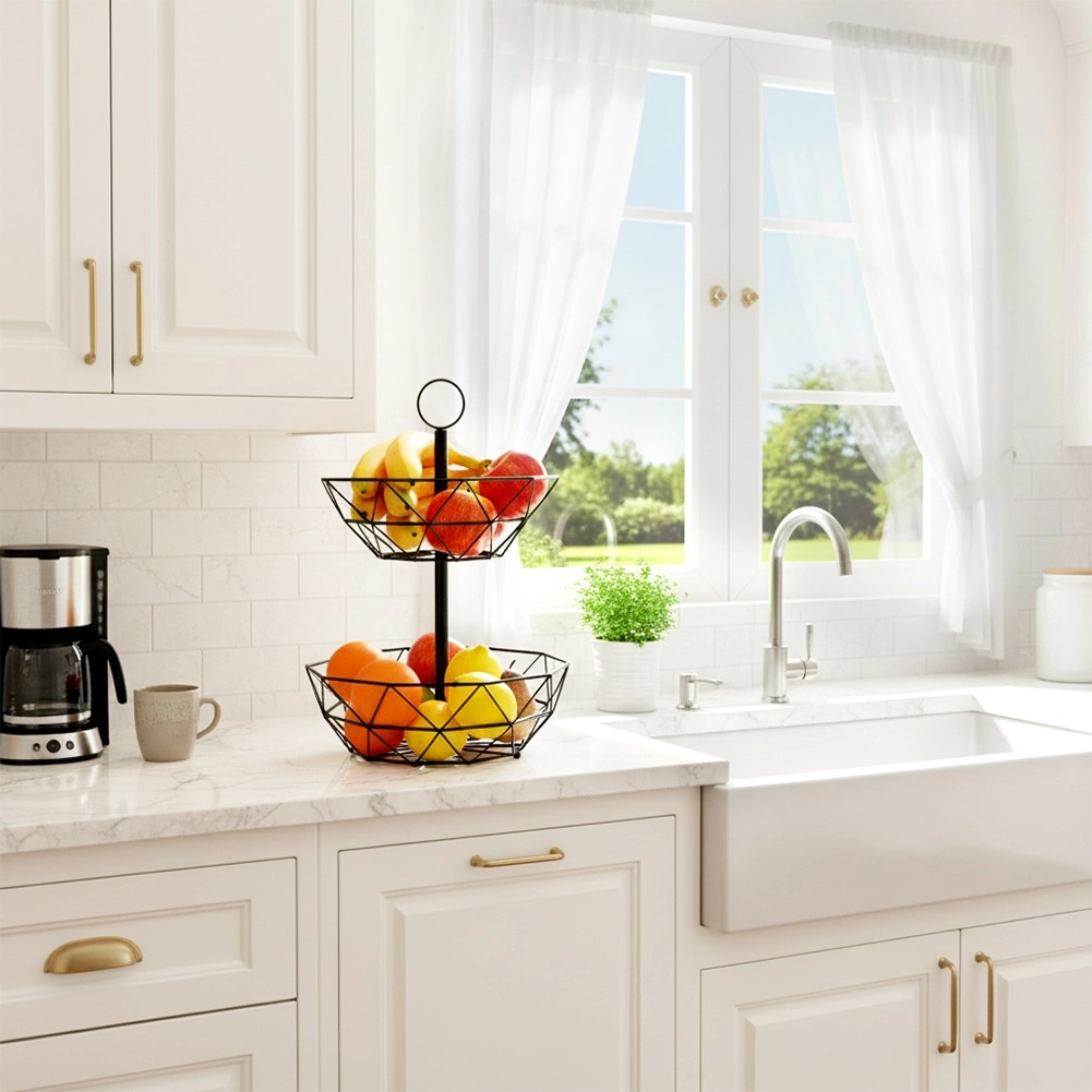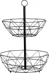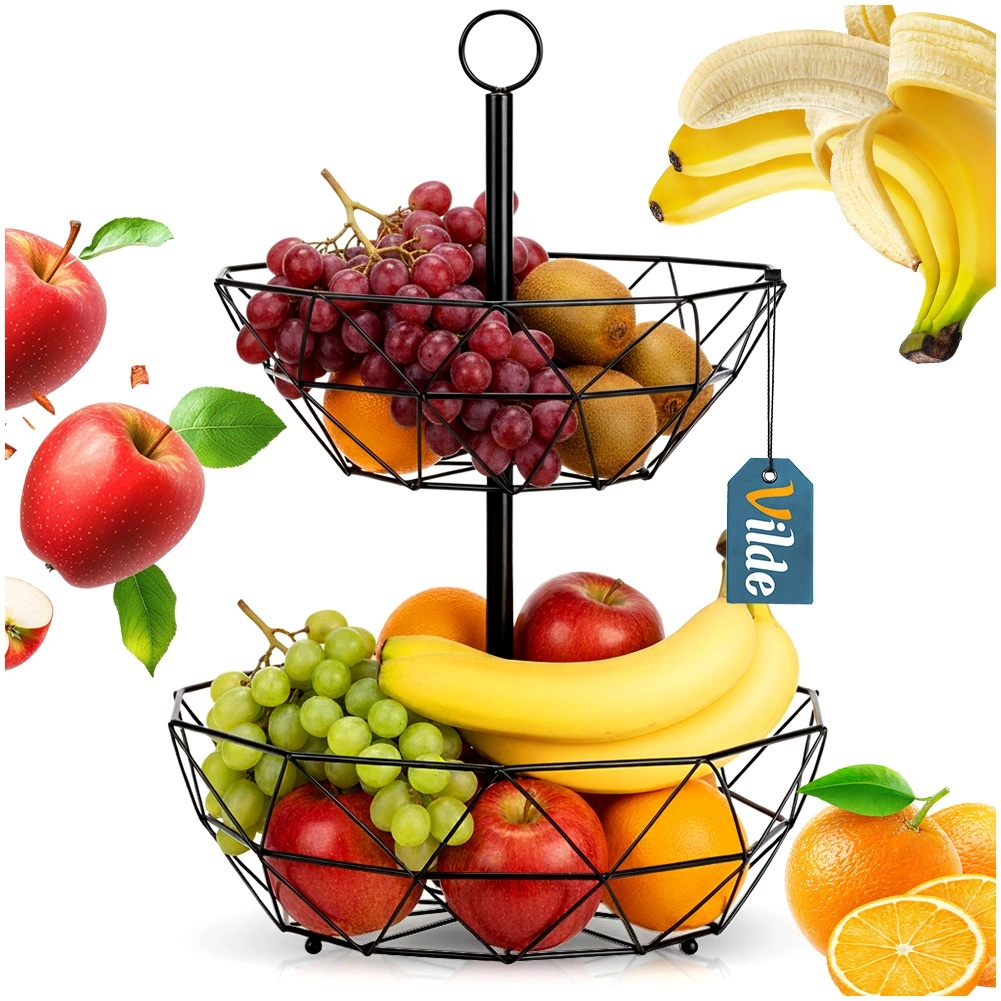 Dvonivojska žičnata košara je odličen način za pregledno in higiensko shranjevanje sadja, zelenjave in drobnarij v kuhinji ali jedilnici. Odprta konstrukcija podpira cirkulacijo zraka, zato sadje ostane dlje sveže, vertikalna razporeditev pa prihrani dragocen prostor na delovni površini.
