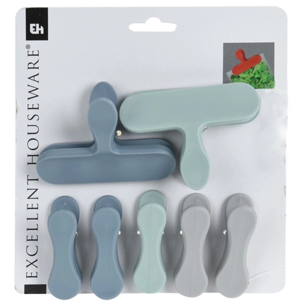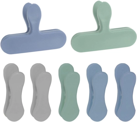 Pet manjših sponk (6,5 cm) in dve večji (9 cm) pokrijeta tako majhne vrečke z začimbami kot tudi večje embalaže s testeninami ali čipsom.
