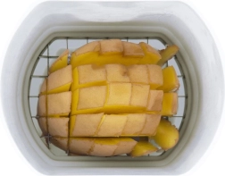 Uporaba je preprosta: vstavite krompir, pritisnite in končano. Rezalnik z lahkoto obdela tudi bučko, jabolko ali hruško – idealno za pripravo solat, pečenih jedi in zelenjavnih prilog. Kompaktne mere prihranijo prostor v kuhinji in olajšajo shranjevanje.