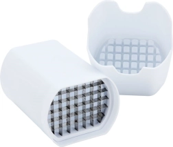 Pripravite hrustljav domač pomfrit v nekaj sekundah. Ročni rezalnik z nerjavno mrežico natančno in hitro reže krompir ter druge sestavine na enakomerne palčke ali kocke. Odporno belo ohišje iz kakovostne plastike zagotavlja stabilnost in dolgo življenjsko dobo, ostra rezila iz nerjavečega jekla pa čist rez brez cukanja.