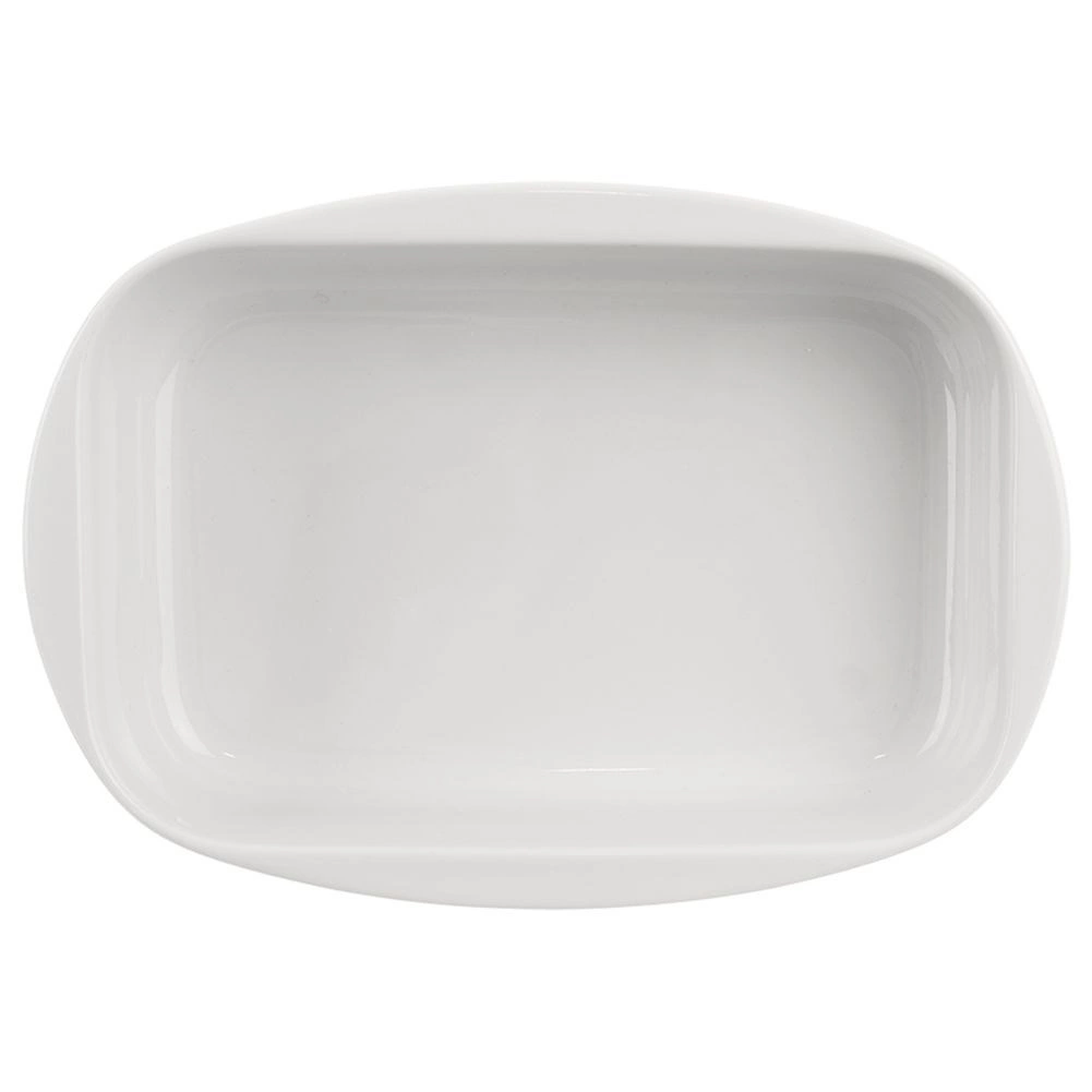 Elegantna bela porcelanasta pekač posoda je odlična za vsakodnevno peko in serviranje. Zunanji rebrast videz doda stil, medtem ko gladko glazirano notranje dno olajša jemanje jedi iz posode in kasnejše čiščenje. Zaradi kompaktne velikosti 24 × 17 × 5 cm je popolna za manjše porcije, priloge ali sladice.