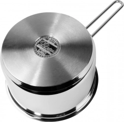 Z univerzalno združljivostjo je primerna za plinske, električne, steklokeramične, halogenske in indukcijske plošče. Polirana zunanjost deluje reprezentativno pri serviranju neposredno na mizo, matirana notranjost pa olajša vzdrževanje. Ergonomski ročaj omogoča varno rokovanje, kozico pa lahko obesite na reling, da je vedno pri roki.