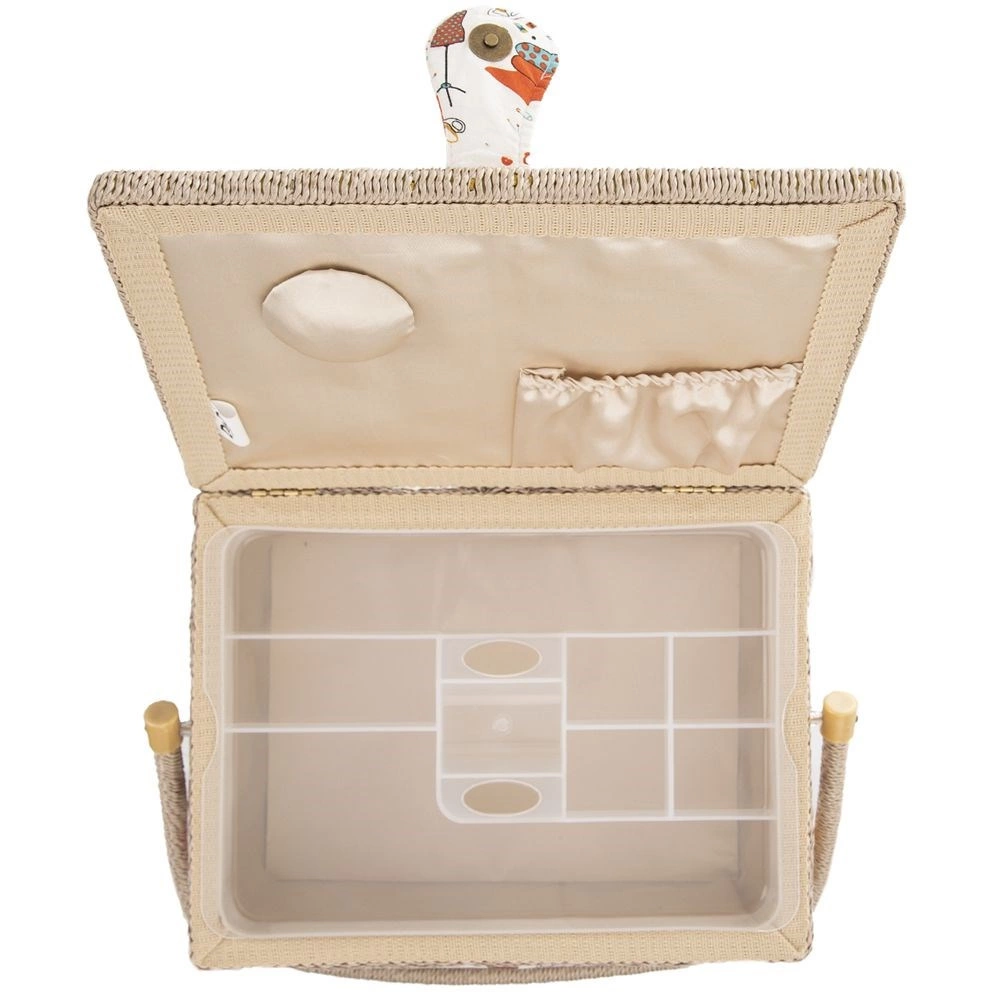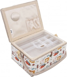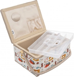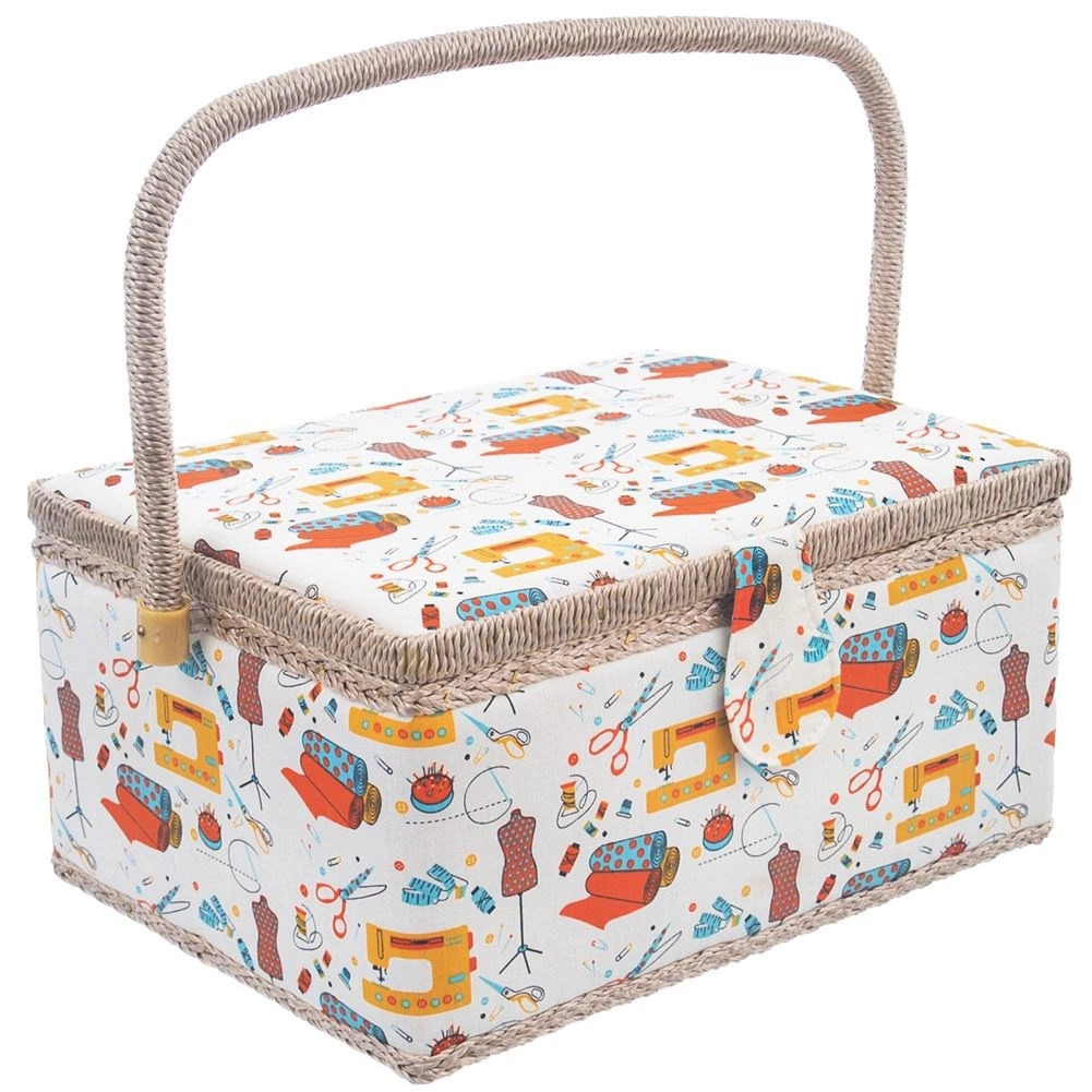 Stilska in kakovostno izdelana niciarka v obliki košare ohranja vaše šivalne potrebščine vedno na svojem mestu. Zunanji premaz z barvitimi krojaškimi motivi se zlahka zlije z interierjem vašega šivalnega kotička. Zaradi kompaktnih mer je idealna za domače šivanje in prenašanje na tečaje ter delavnice.