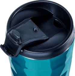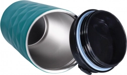 Slogoven termo lonček iz nerjavnega jekla v mat turkizni barvi združuje vzdržljivost, odlično toplotno izolacijo in udobno uporabo. Vakuumska dvojna stena zanesljivo ohranja temperaturo pijače, medtem ko tesni pokrov s silikonskim tesnilom zmanjšuje tveganje uhajanja tekočin. Zahvaljujoč zložljivemu ustniku lahko udobno pijete tudi na poti brez popolnega odvijanja pokrova.