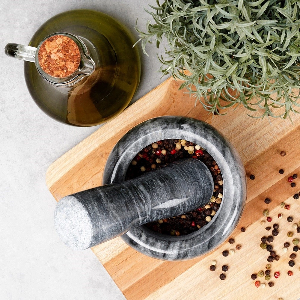 Odkrijte moč ročnega mletja z granitnim možnarjem, ki izstopa po masivni izvedbi in dolgi življenjski dobi. Nepoliran notranji del posode in spodnji del tolkača zagotavljata boljši oprijem in učinkovito drobljenje tudi pri trših sestavinah, kot so poper, semena ali oreščki. Ročno mletje pomaga sprostiti polno aromo – domači kari, pesto ali zeliščne mešanice bodo izraziteje dišali in bili bolj okusni.