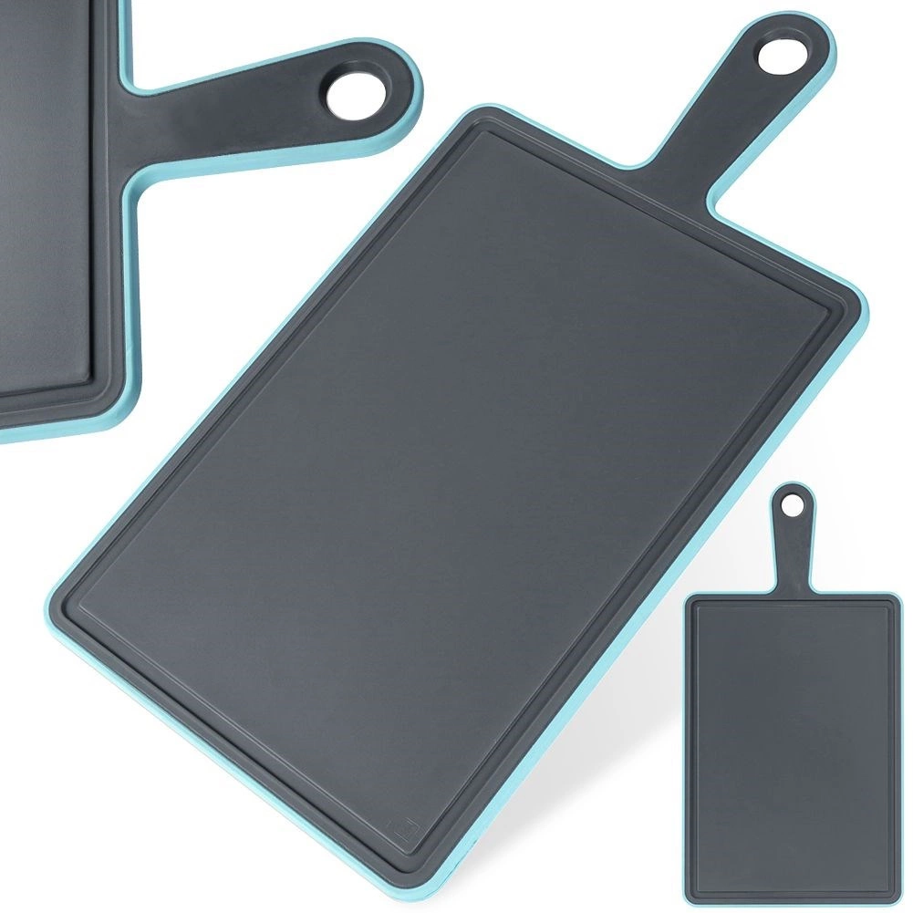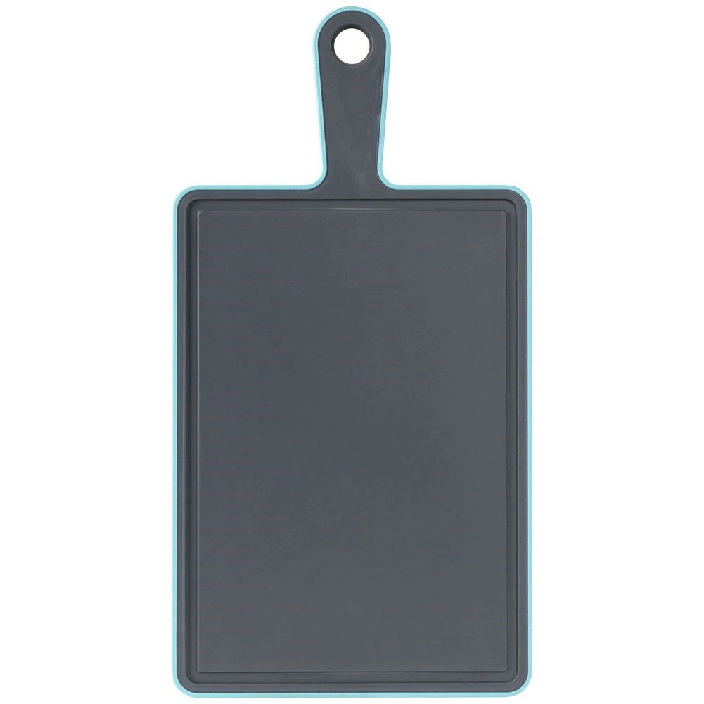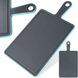 Praktična deska za rezanje za vsakodnevno uporabo v kuhinji. Ima pravokotno obliko, nedrseč rob in udobno uhce za prenašanje in obešanje. Priročen odtočni kanal zadrži sokove iz živil, zato delovna površina ostane čista.