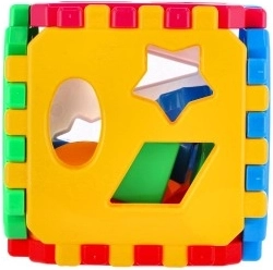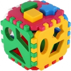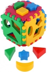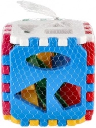 Vsebina paketa vključuje dele za sestavo kocke in komplet oblik za vstavljanje skozi ustrezne odprtine. Odporna plastična izvedba in kompaktne mere 12 × 12 × 12 cm jo naredijo odlično igračo doma in na poti.