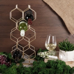 Odprta heksagonalna konstrukcija v zlati barvi je hkrati funkcionalna in dekorativna – vašo zbirko vin spremeni v oblikovalski poudarek kuhinje ali dnevne sobe.
